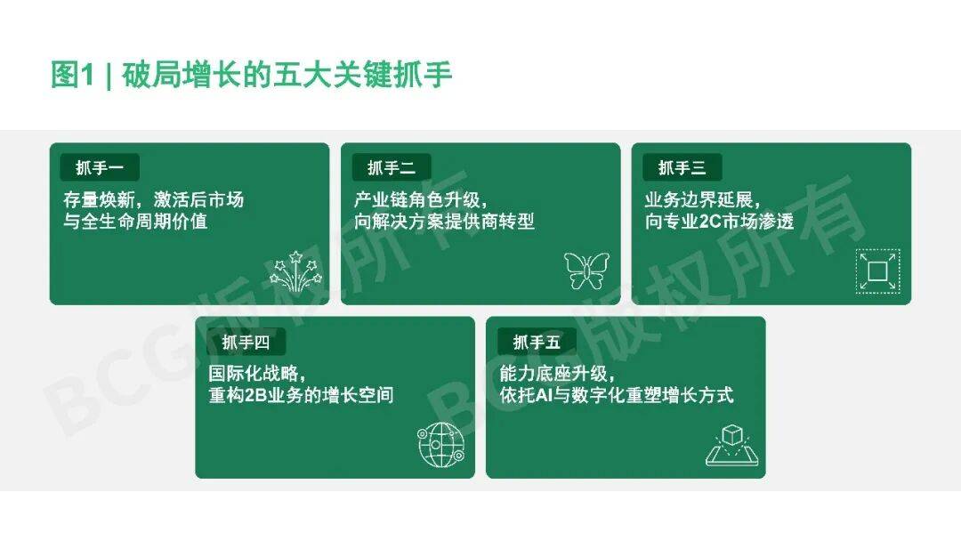 面对上述环境变化,企业需要跳出“局部应对”的思路,重新审视增长逻辑。结合理论框架与实践经验,我们认为楼宇科技和家电领域的企业转型,主要围绕以下五个关键抓手展开(参阅图1)。